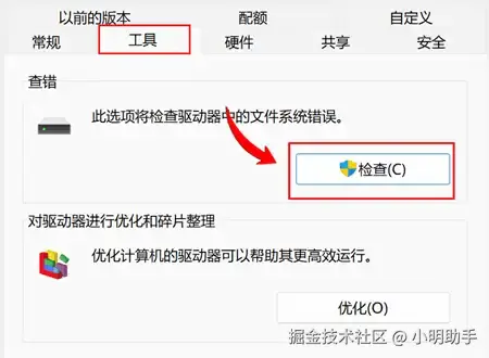 移动硬盘数据恢复方法3:磁盘检查优化功能