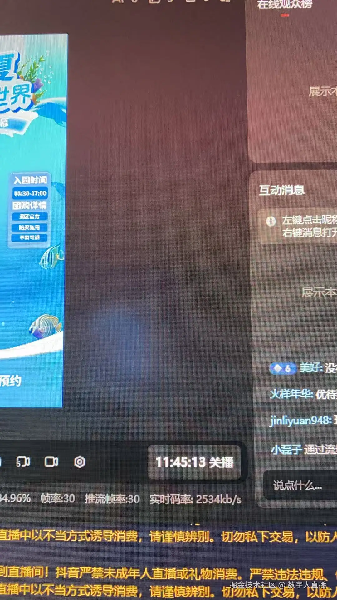 画面、人物、声音、话术重复率高、低频互动这些都有可能触发平台检测的非实时提醒!