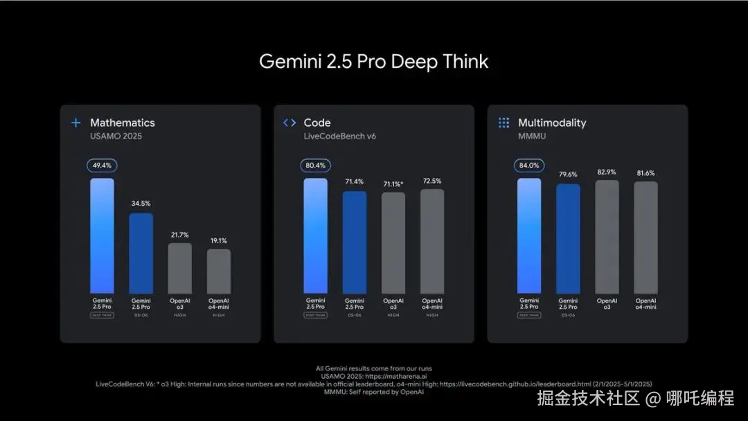 Gemini 2.5 Pro全方位升级,开始支持Deep Think深度思考,具备并行思考能力。