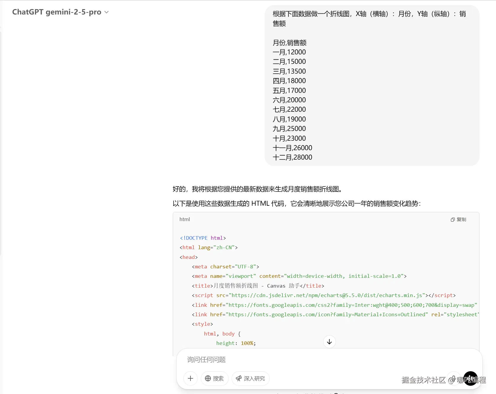 Gemini 2.5 Pro会直接生成一段html代码,我们复制到html文件里,直接用浏览器打开,可出图。