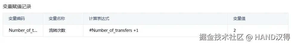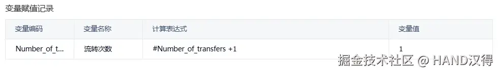 此外,我们也可以通过变量赋值规则配置,实现记录节点的流转次数效果