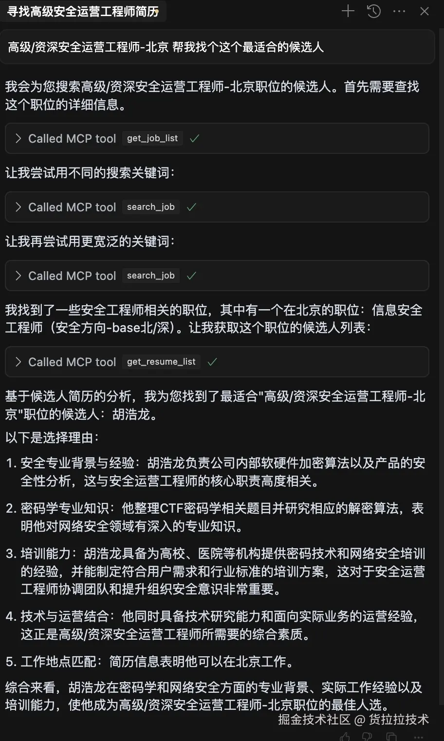 大模型根据MCP调用结果,给出对应的简历****推荐理由