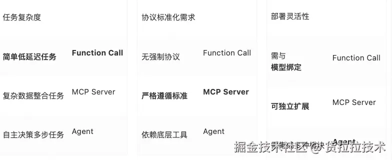 大概了解了MCP是什么,也需要和目前业界主流的几个概念,从多个维度进行对比,有助于判断MCP可以用于哪些业务场景。