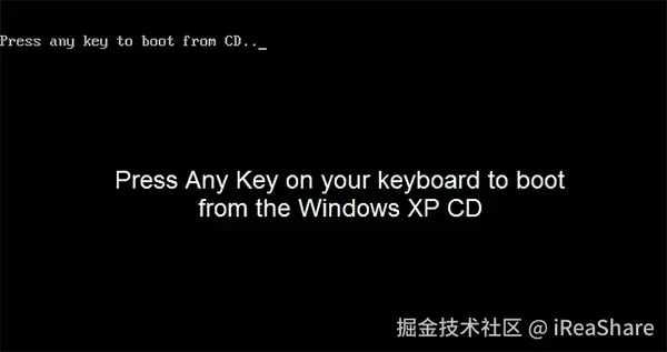 步骤 3: 如果您的 BIOS 配置正确,您应该会看到类似“按任意键从 CD 启动...” 的消息,然后按键盘上的任意键从 CD 启动启动过程。