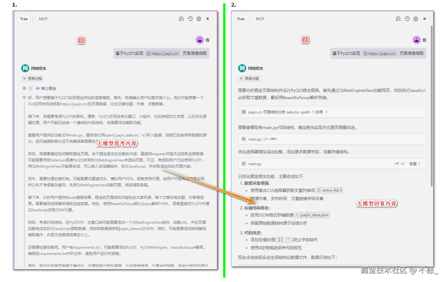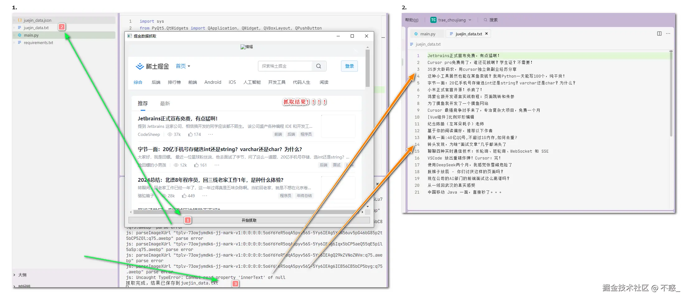 今天我们就用 Trae IDE + PyQt5 来完成这样一个实用而不复杂的小项目:一个图形化的“掘金首页信息爬取器”。它不仅能自动抓取掘金首页的文章信息,还能在桌面界面中整洁地展示数据,为你节省大量筛选时间。