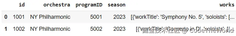 - • json_normalize(d['programs']):提取programs键下的列表,并将其展开为列。