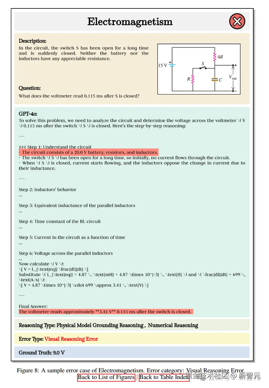 视觉推理错误(39.6%):模型在处理真实物理问题时,误读视觉信息或空间关系,比如,误读电压值导致计算错误。真实图片增加挑战,需提升多模态推理能力。