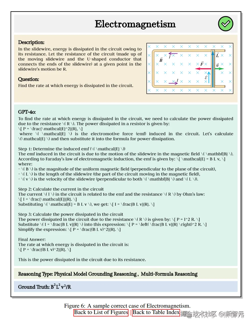 GPT-4o 表现不错,它先确定了滑线运动产生的电动势,再计算出电路中的电流,最后得出能量耗散速率,整个回答逻辑严密,步骤分明,成功得出正确结果。