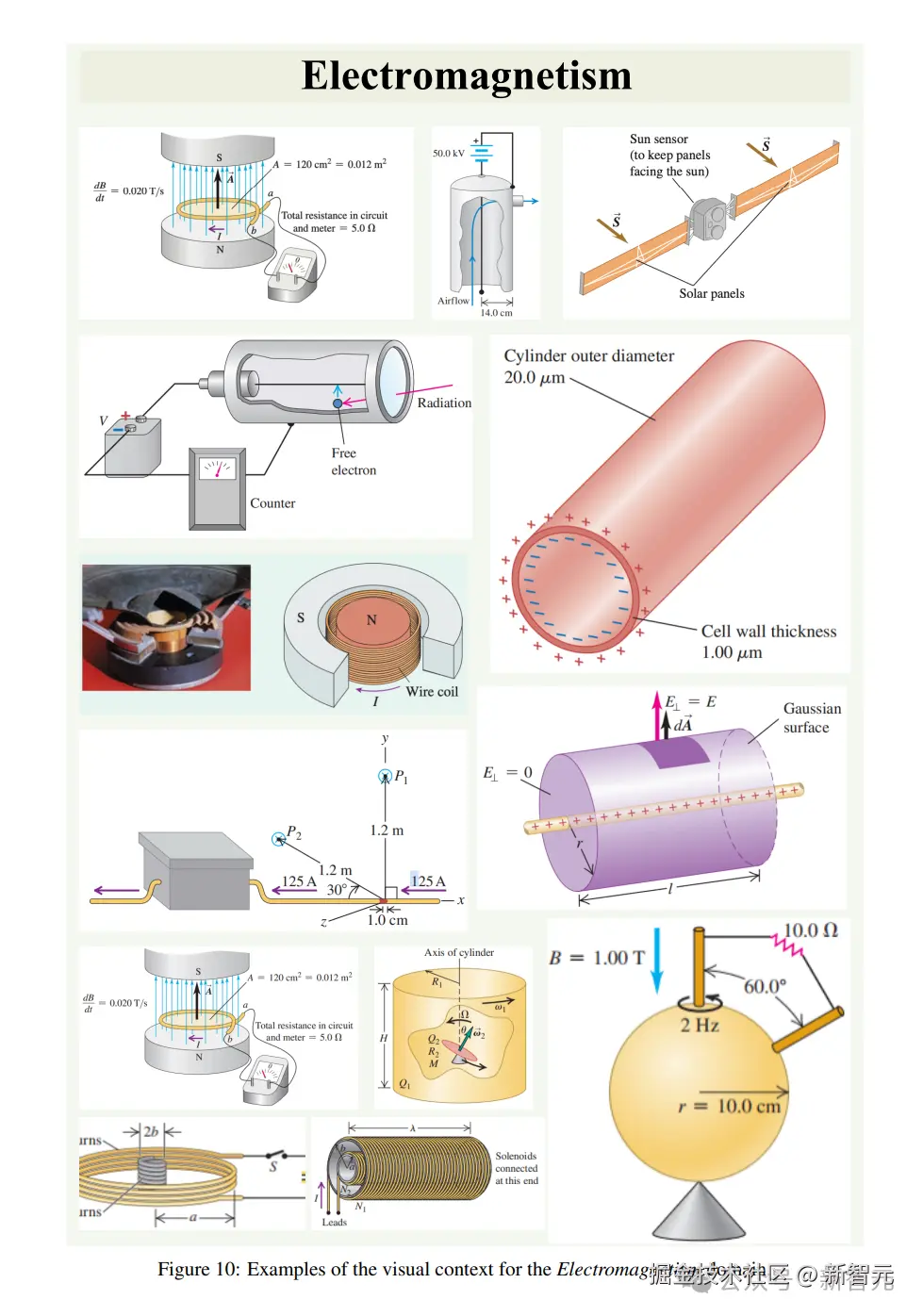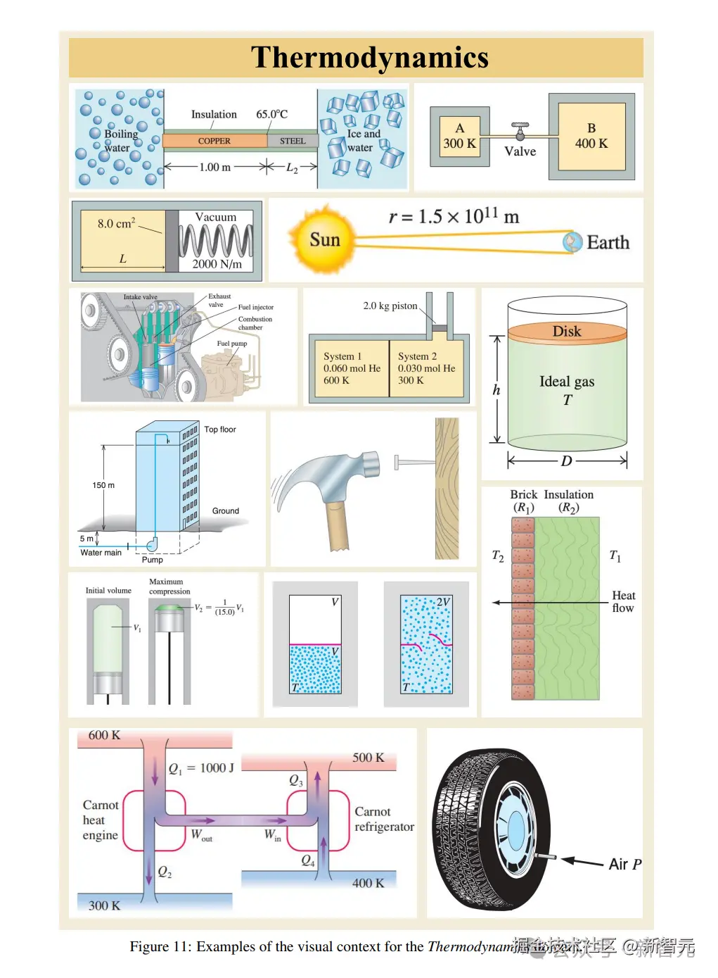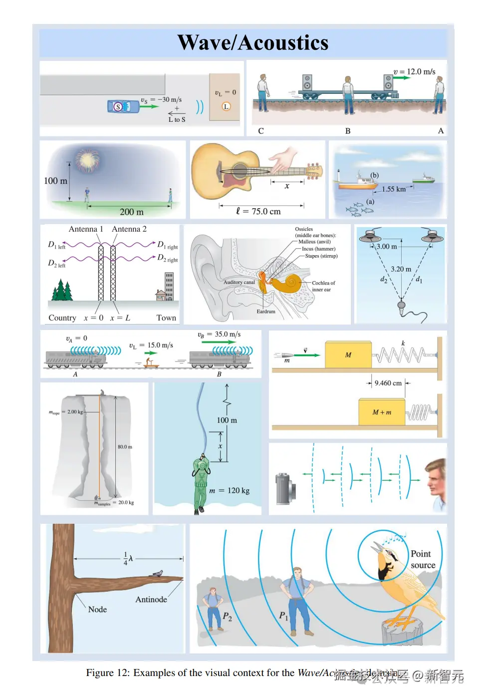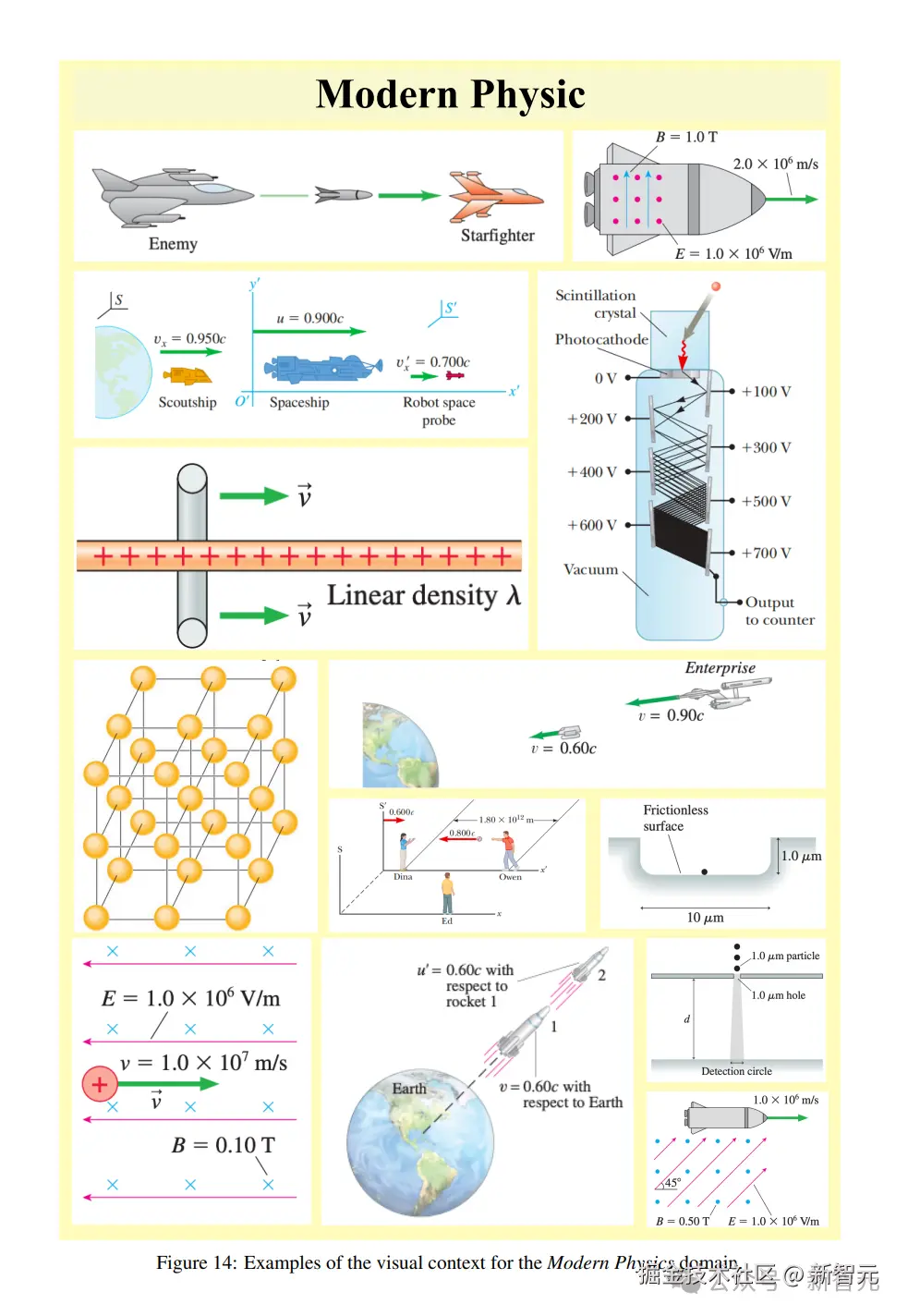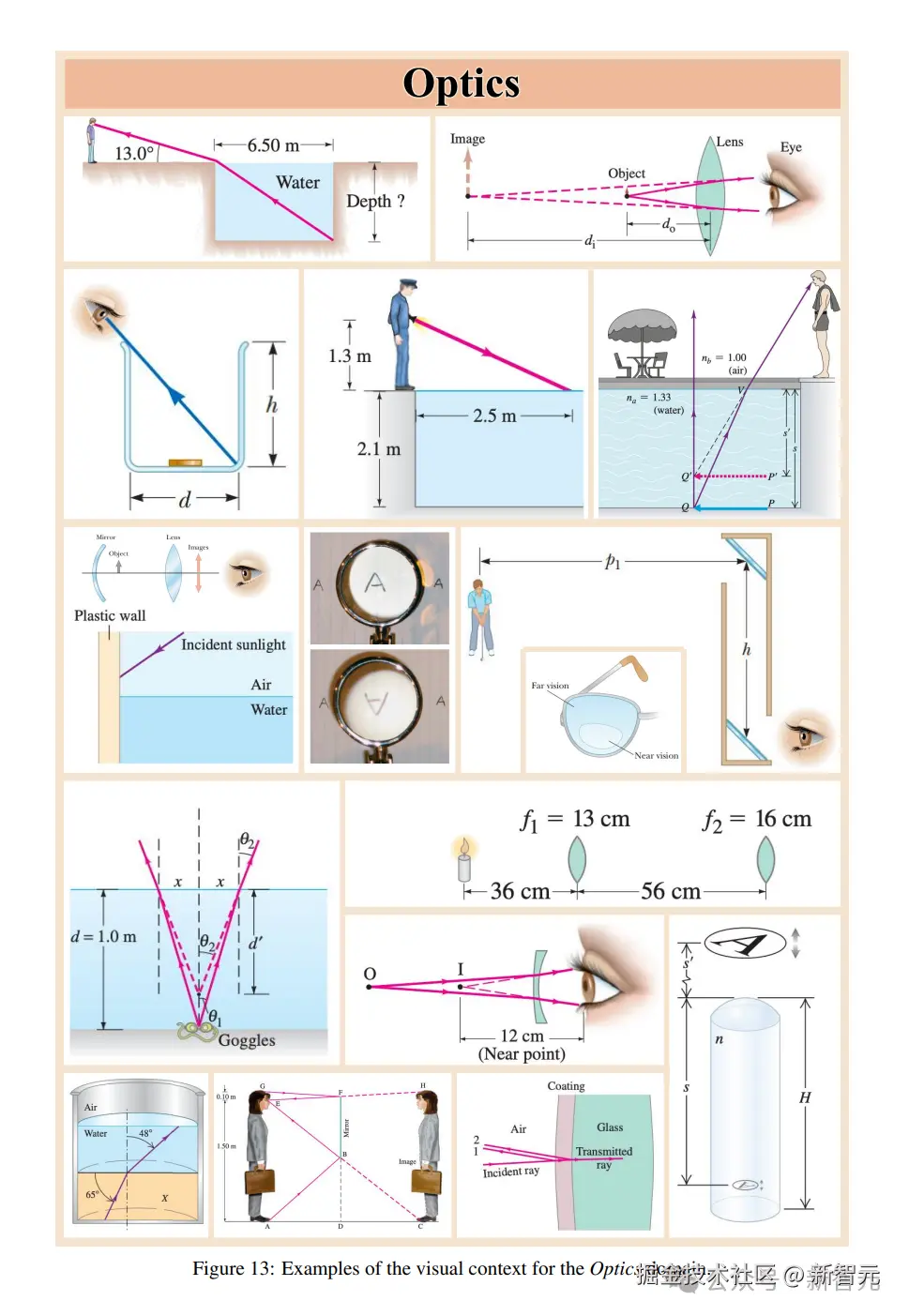 以下这些图片,分别是力学、电磁学、热力学、波动 / 声学、光学和现代物理六大类题目的图像。