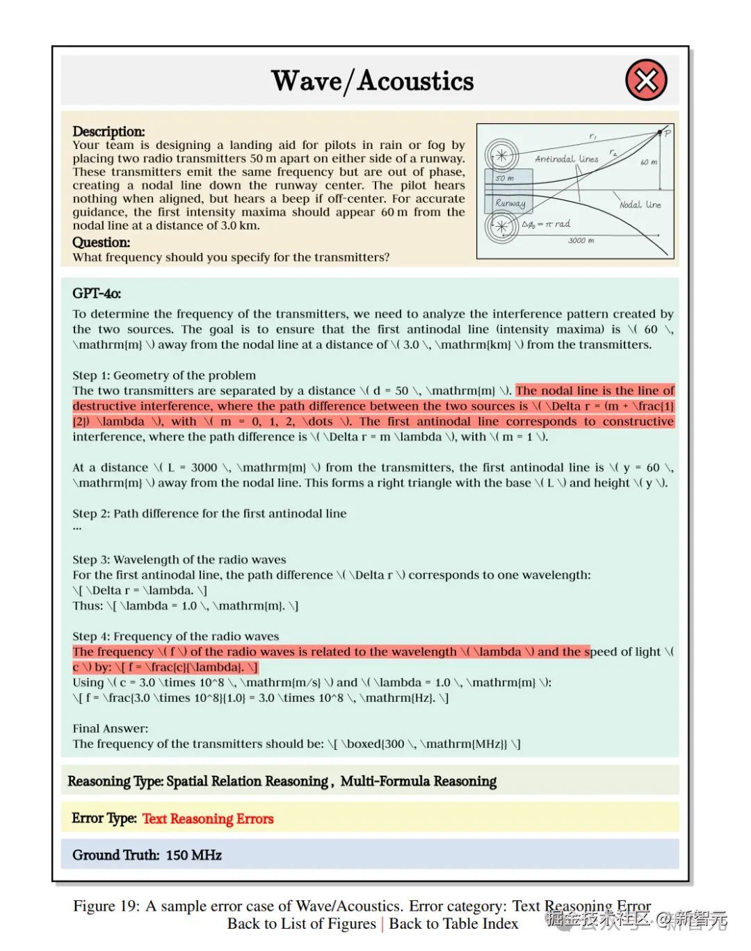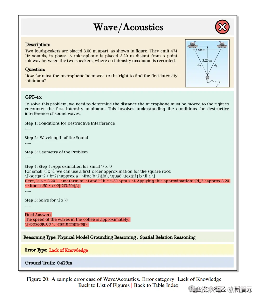 在计算相关条件、声波波长、几何关系时都给出了正确答案,然而在第四步对小 x 进行近似展开时,出现了计算错误。