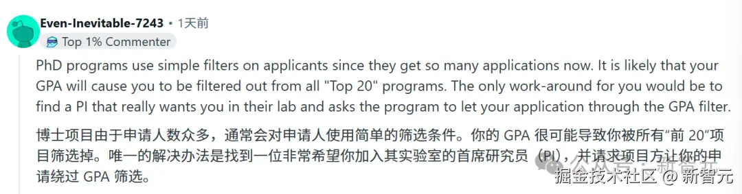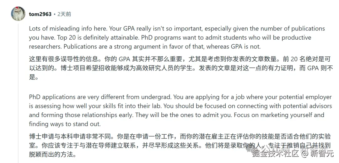 也有人说,自己被 TOP 5 的学校录取了,并没有 GPA 筛人这一项。只要有过论文发表经历,就不会被自动过滤掉的。