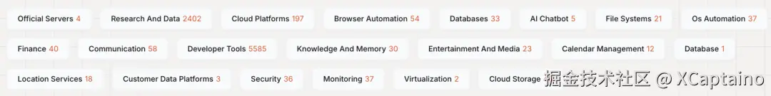 以mcp.so上的MCP Server目录为例,我们看到MCP Server的范围已经涵盖数据、研究、云平台、数据库、Chatbot、文件系统、自动化等多个领域。