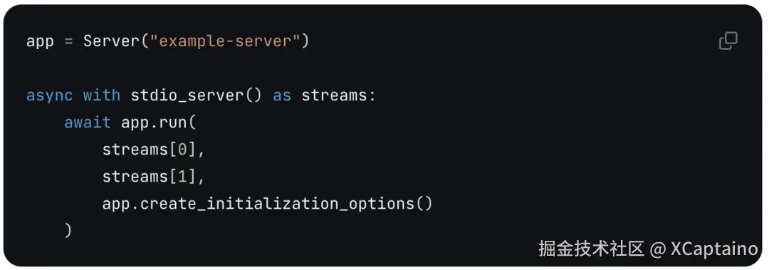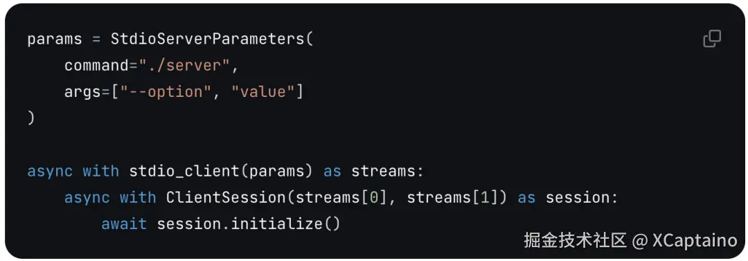 在Host应用内部,MCP Client 与 MCP server 保持 1:1 的连接。MCP Client 充当 LLM 和 MCP Server 之间的桥梁。简单理解就是MCP Client SDK,用于实现Host应用使其能够与MCP Server交互。