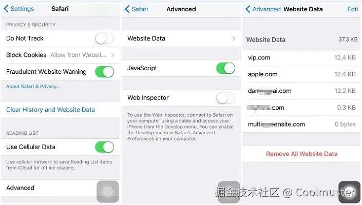 步骤4.在随后的窗口中,找到并点击“网站数据”。这将使您能够看到浏览历史记录中访问过的网站的完整列表。