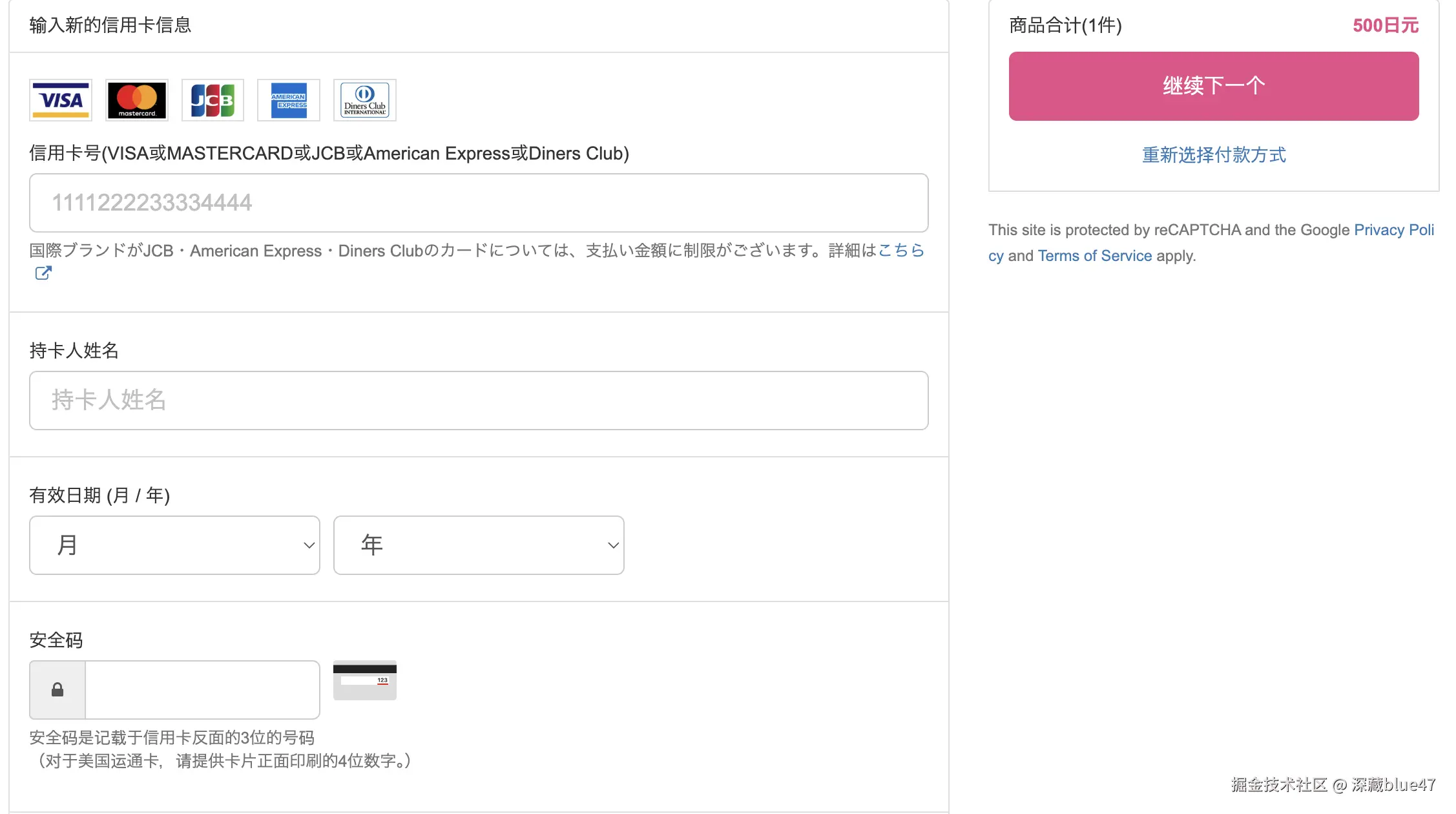 - 选择“信用卡”作为支付方式;