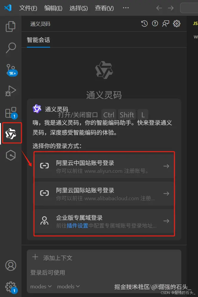 安装完成后,由于通义灵码依赖阿里云服务,必须登录账号才能正常使用。