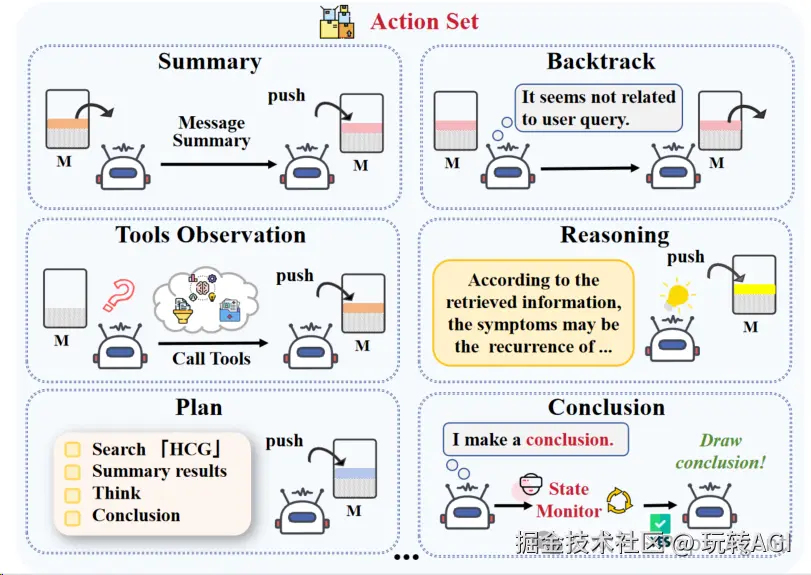 - 多轮推理与回溯能力:支持计划、回溯、总结等多种 agent 行为,实现人类式的问题解决流程。