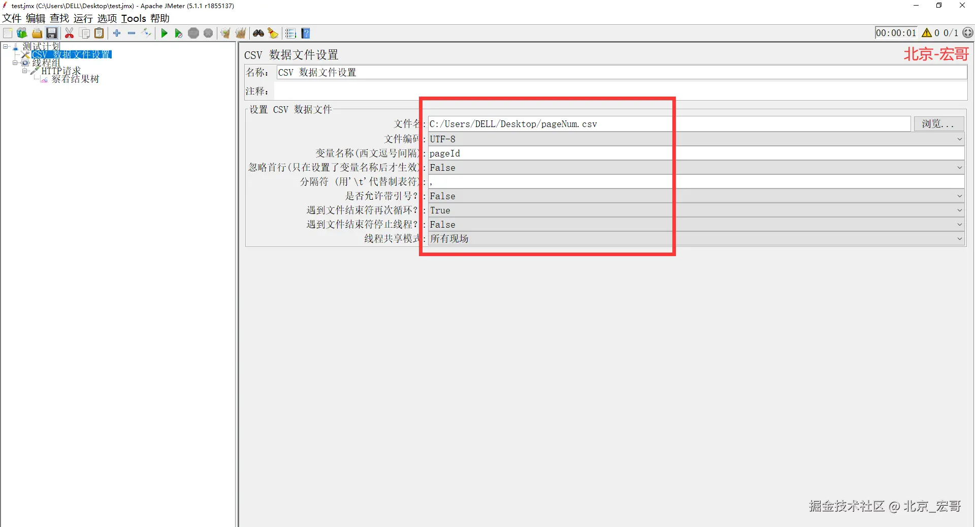 好了,到此带有外部文件的Jmeter脚本就已经调试好了,言归正传:如何在Linux服务器上或者虚拟机运行这样的脚本了???接下来宏哥将会一一介绍和分享。