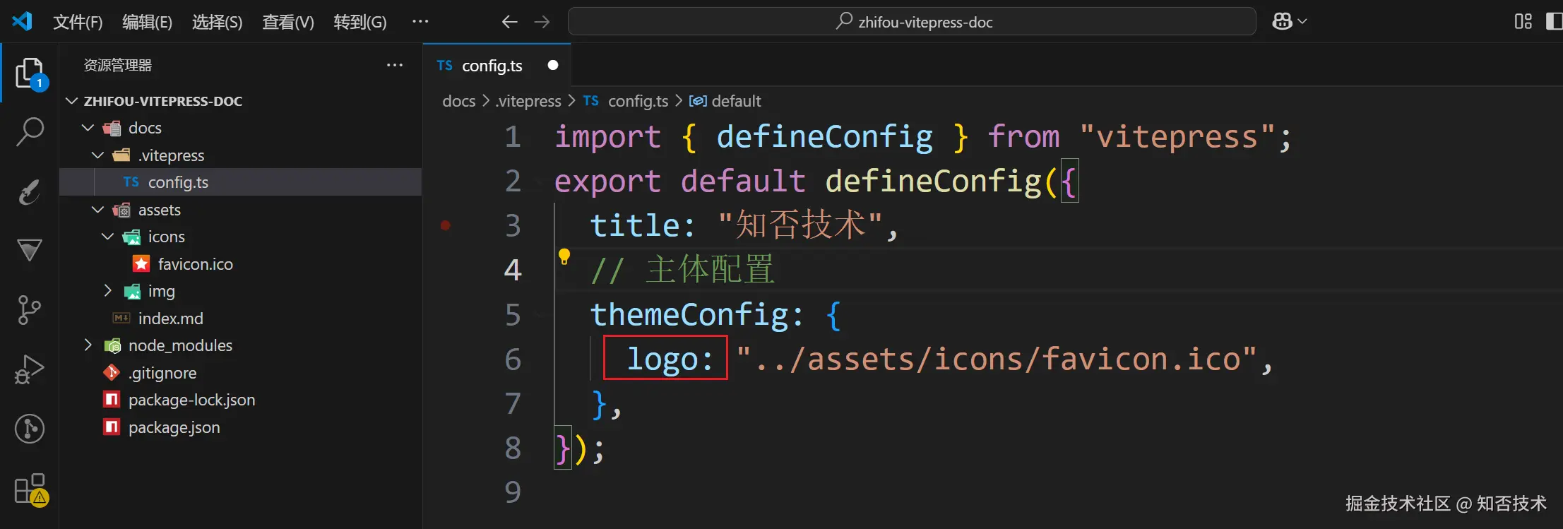 在 配置文件里面 themeConfig 里面配置 logo 属性: