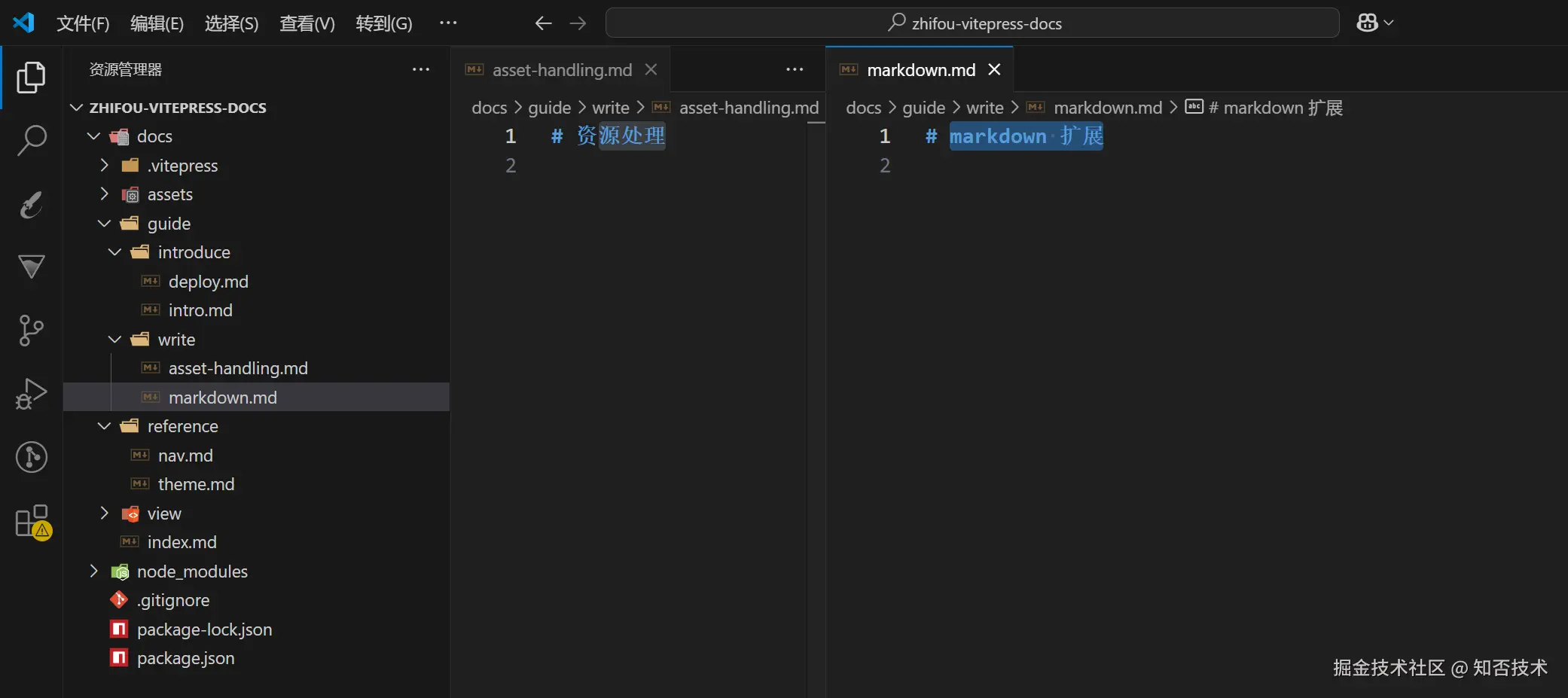 在 doc 文件夹下分别新建 introduce 和 reference 文件夹,然后依次新增 md 文件。