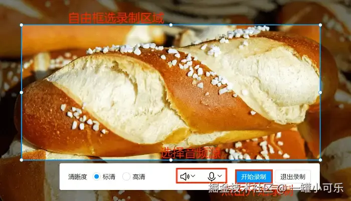 步骤3:在弹出的窗口中,你可以选择录制整个屏幕,还是只录制某个区域。一切准备就绪后,点击 “录制” 按钮就可以啦。