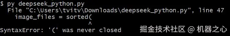 可以看到,DeepSeek-R1 用一分多钟完成了任务,那实际效果如何呢?很遗憾,出现了一个报错: