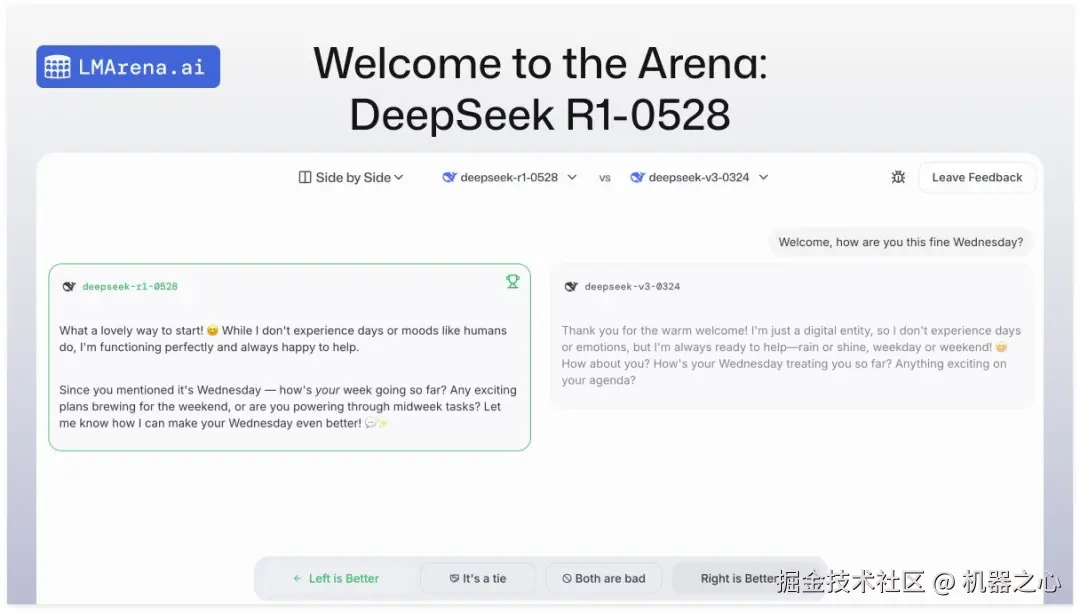 目前,ChatBot Arena 上也已经更新了新版本的 DeepSeek R1,让我们看看大家充分测试过后它的排名能爬到多高。
