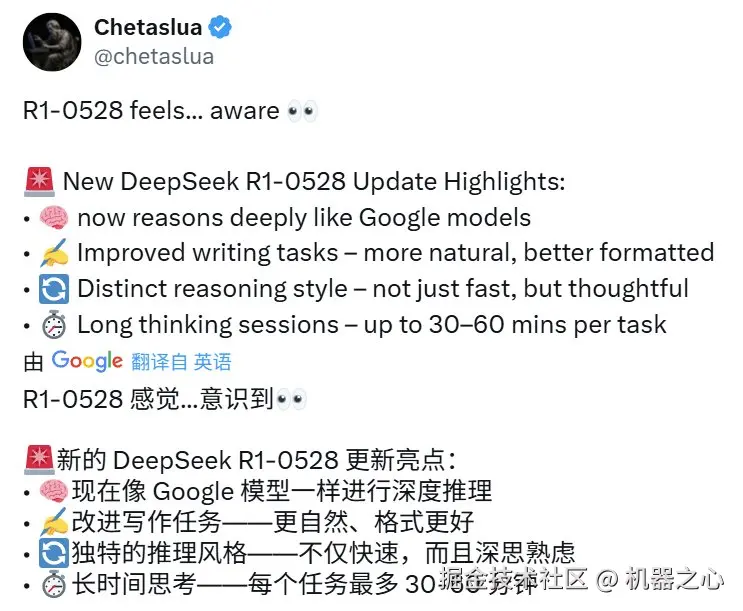 虽然 DeepSeek-R1-0528 才刚出来不久,但已经有不少网友分享了自己的实测结果。