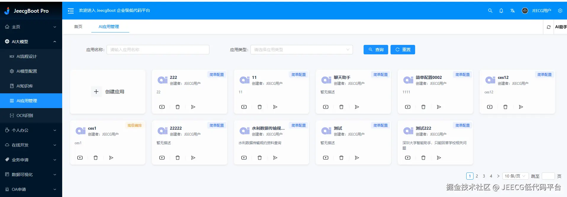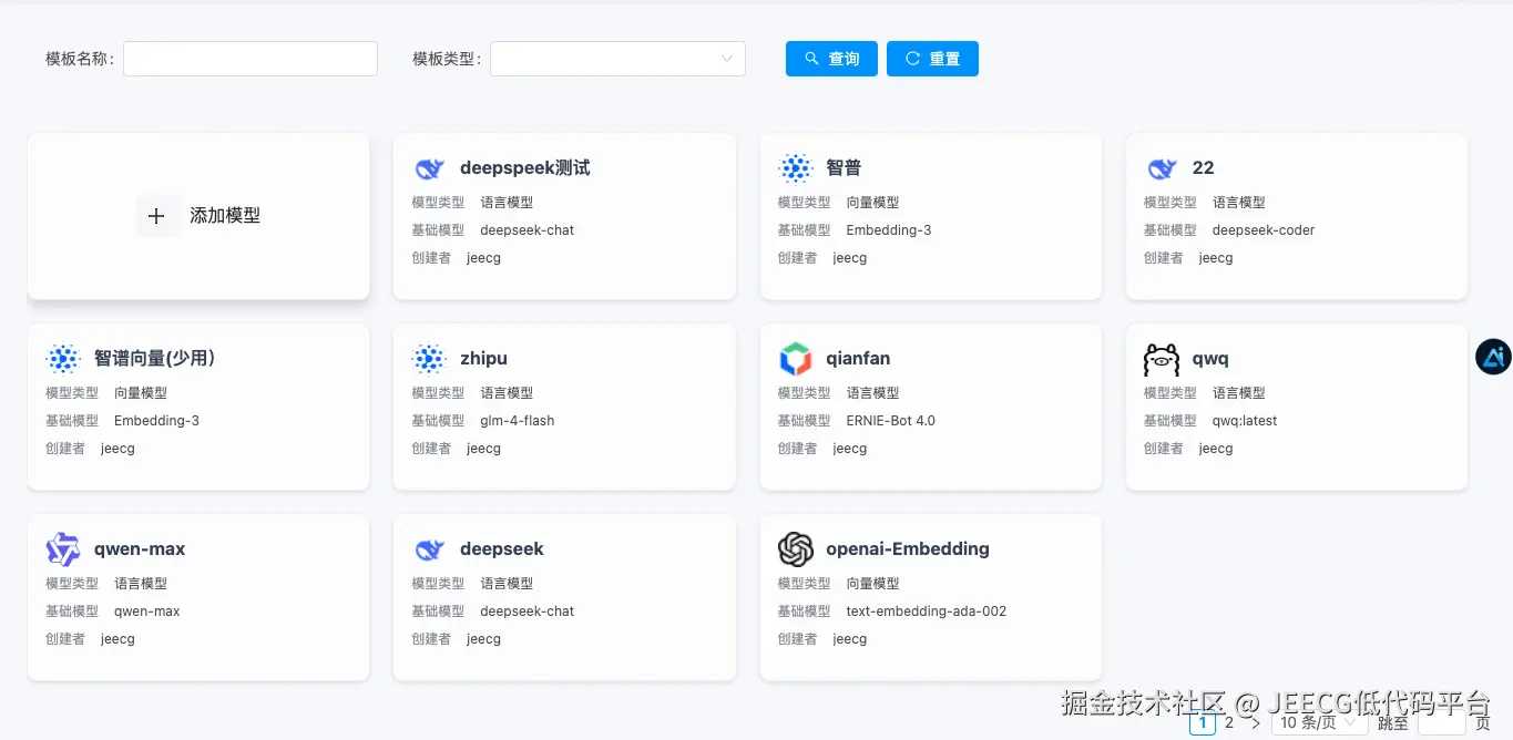 JeecgBoot 平台的 AIGC 功能模块,是一套类似 Dify 的 AIGC应用开发平台 + 知识库问答 子系统,是一款基于 LLM 大语言模型 AI 应用平台和 RAG 的知识库问答系统。 其直观的界面结合了 AI 流程编排、RAG 管道、知识库管理、模型管理、对接向量库、实时运行可观察等,让您可以快速从原型到生产,拥有 AI 服务能力。