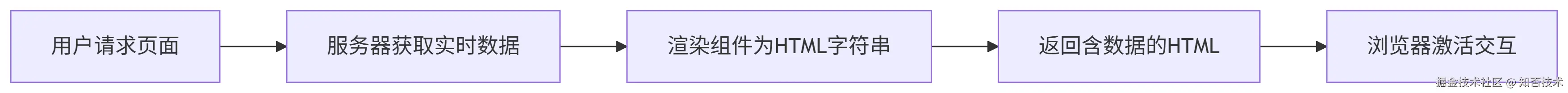 技术本质: 用户每次请求时,服务器实时组装数据和模板生成 HTML 再返回给浏览器。