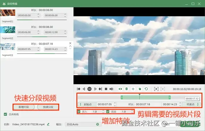步骤3:录制结束后,会自动跳转到视频预览页,我们可以在这个页面的右下角选择 【高级剪辑】 对视频进行后期编辑操作,如快速分段视频、增加视频特效等。
