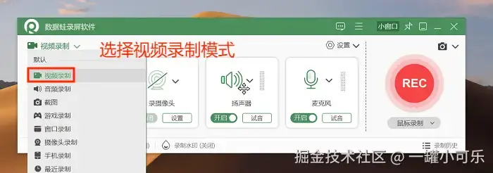 备注:该软件有多种录制模式,如视频录制、音频录制、游戏录制等。