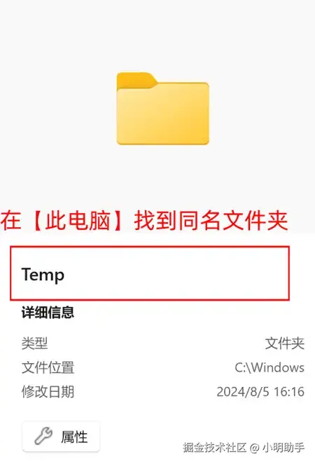 清理临时文件: 在电脑桌面打开【此电脑】,在里面的搜索框输入【temp】,找到同名文件夹,在里面搜索出无用文件并删除即可。