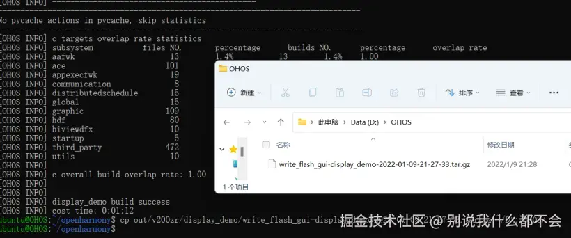 由于已经把D:\OHOS文件夹进行了共享,Windows文件和实例中进行文件传递共享就会比较方便。也可以使用命令multipass transfer来传递文件,文件夹共享当然更加方便些。