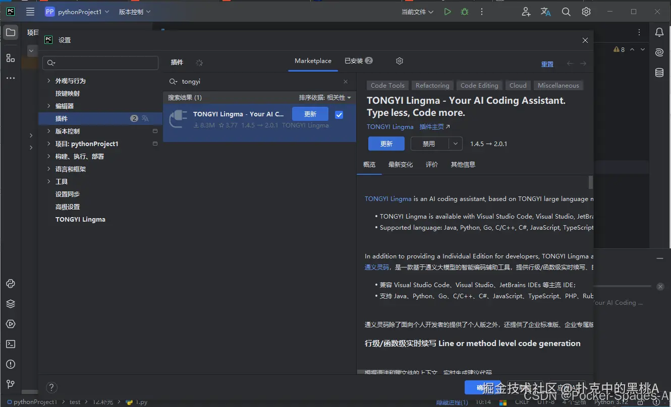 三.通义灵码在 PyCharm 中的安装与配置