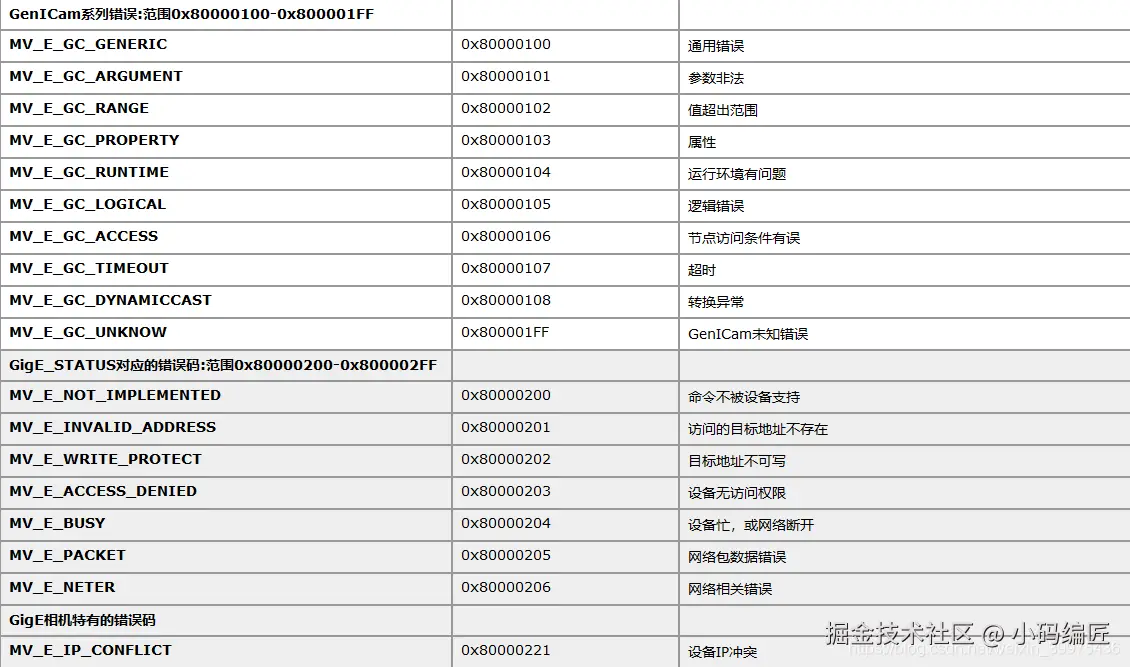 10、MV_E_GC_GENERIC 0x80000100 通用错误