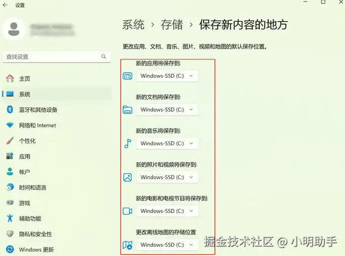 打开电脑“设置”,在列表选择“存储”,点击“保存新内容的地方”,在指定的地方修改文件存储位置即可。