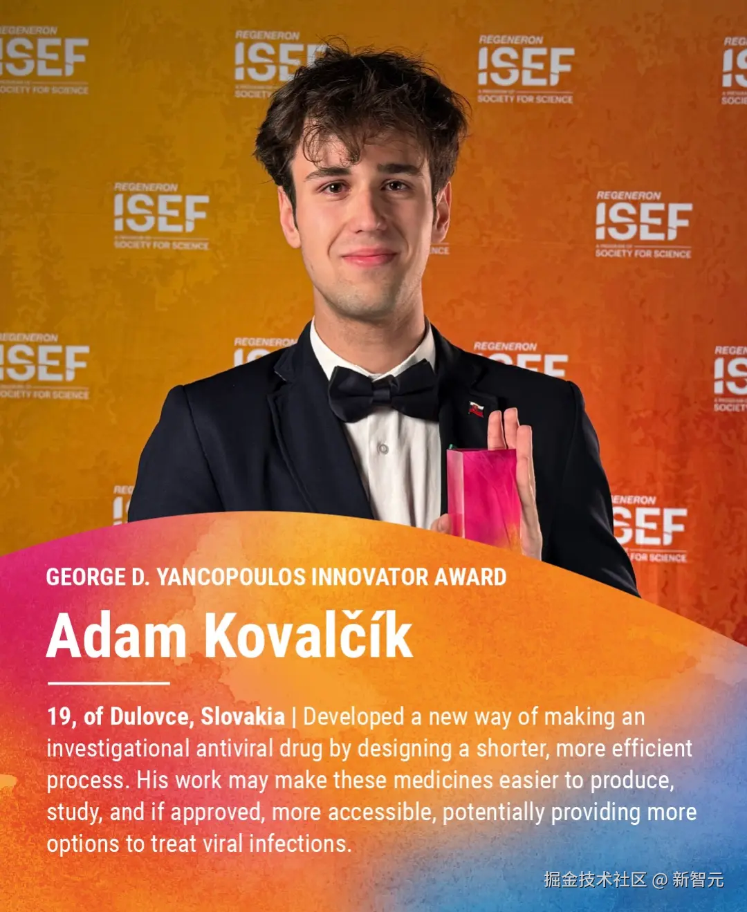 他将大赛最高奖 George D. Yancopoulos 创新奖(奖金 10 万美元),授予了这位来自斯洛伐克的少年。