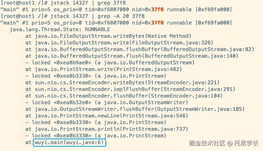 (4)通过jstack + gerp组合命令,查找目标线程的堆栈信息