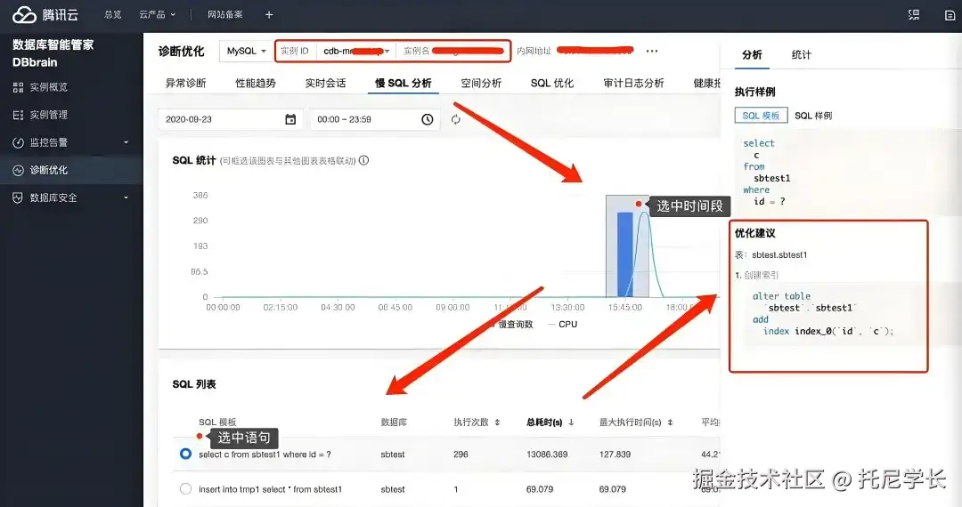 对于原因(2),我们看慢查询列表中是否有新增慢查SQL,且该SQL执行时间超长,或执行次数很多。