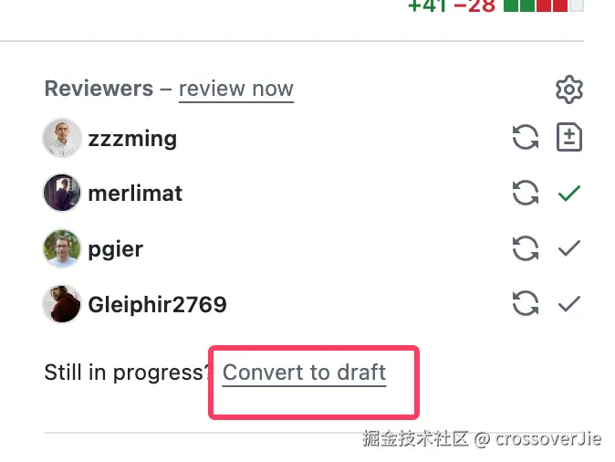 如果自己的 PR 还需要频繁的提交修改,那建议可以先修改为 draft,这样可以提醒维护者稍后再做 Review。