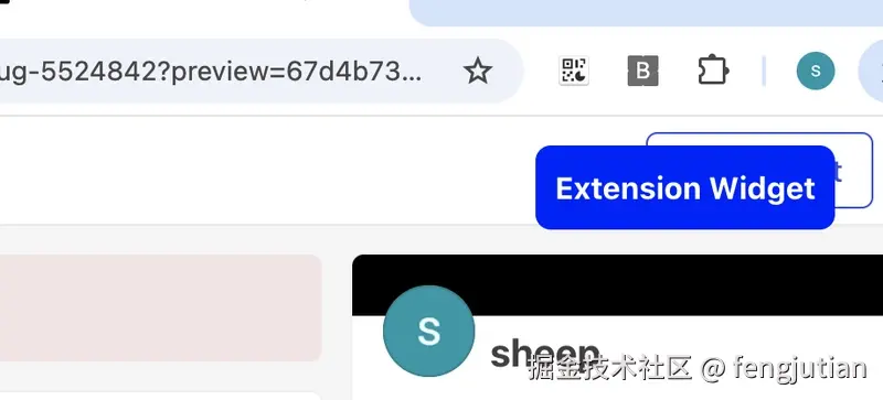 一旦扩展安装并启用,widget.js 将被注入并执行在所有匹配 https://test.com/* URL 模式的页面中,“Extension Widget” 小部件将在右上角显示。