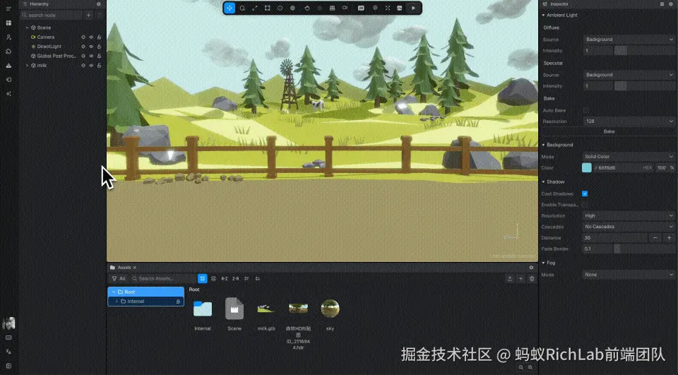 对整体色彩空间进行了增强,支持硬件级的 sRGB 纹理,调整材质、灯光、粒子等所有颜色输入为线性色彩空间和支持线性透明混合,支持编辑 HDR 颜色(使颜色能够描述超出 0~1 范围的线性值)。这些升级提升了整体渲染色彩的 准确性、性能,并减少 Shader 编码的复杂度。