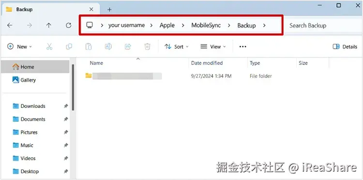 Windows 11:C:\Users[您的用户名]\Apple\MobileSync\Backup。