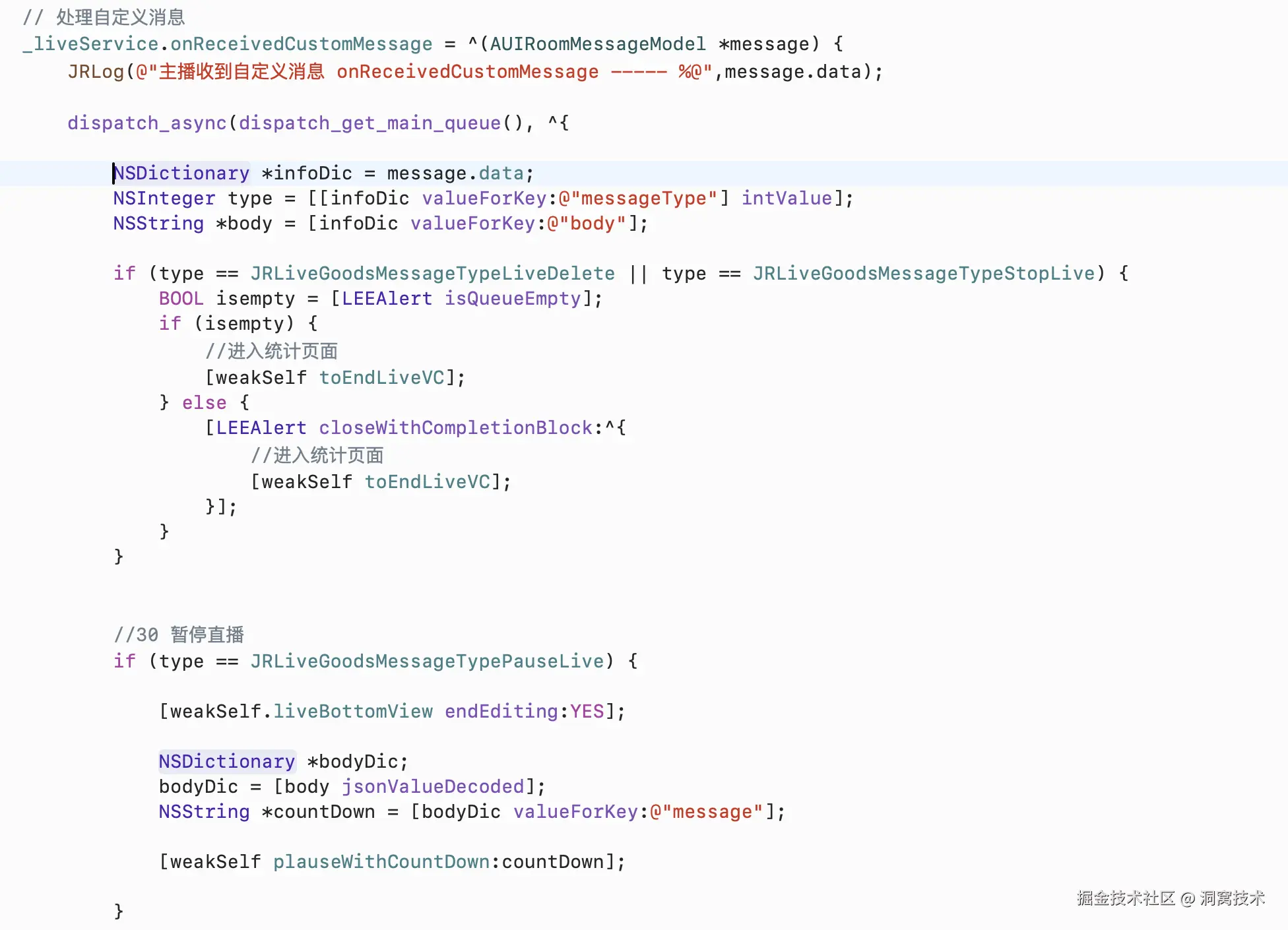 - 接收自定义消息 需要和后端以及前端等统一约定。