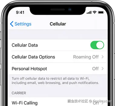步骤2. 点击“蜂窝网络”。确保蜂窝数据已打开。