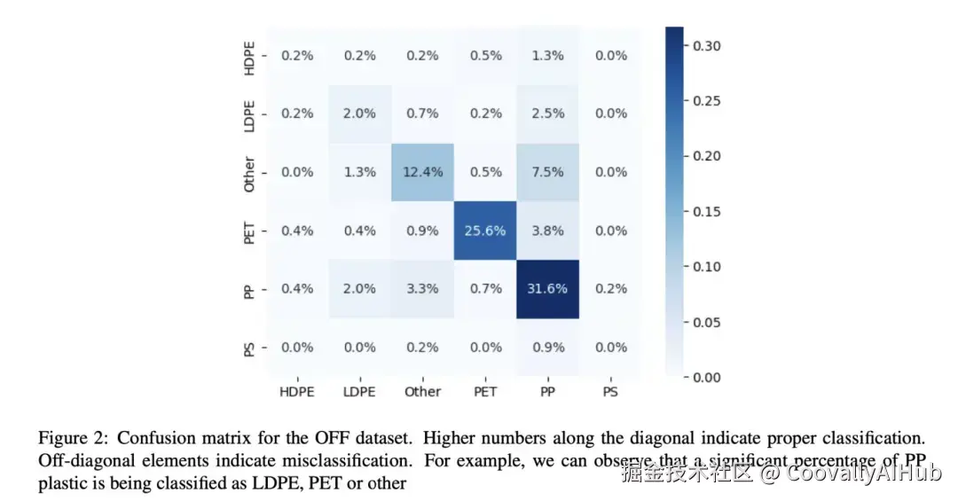 在该方法中,研究者们认为大多数基于图像的塑料分类算法都是基于识别塑料的物理特征。使用了各种分析工具,如 Grad-CAM、平均精度 (mAP) 和混淆矩阵来证明此观点。为了评估各种基于视觉的检测算法的功效,汇总了各种来源的塑料图像。