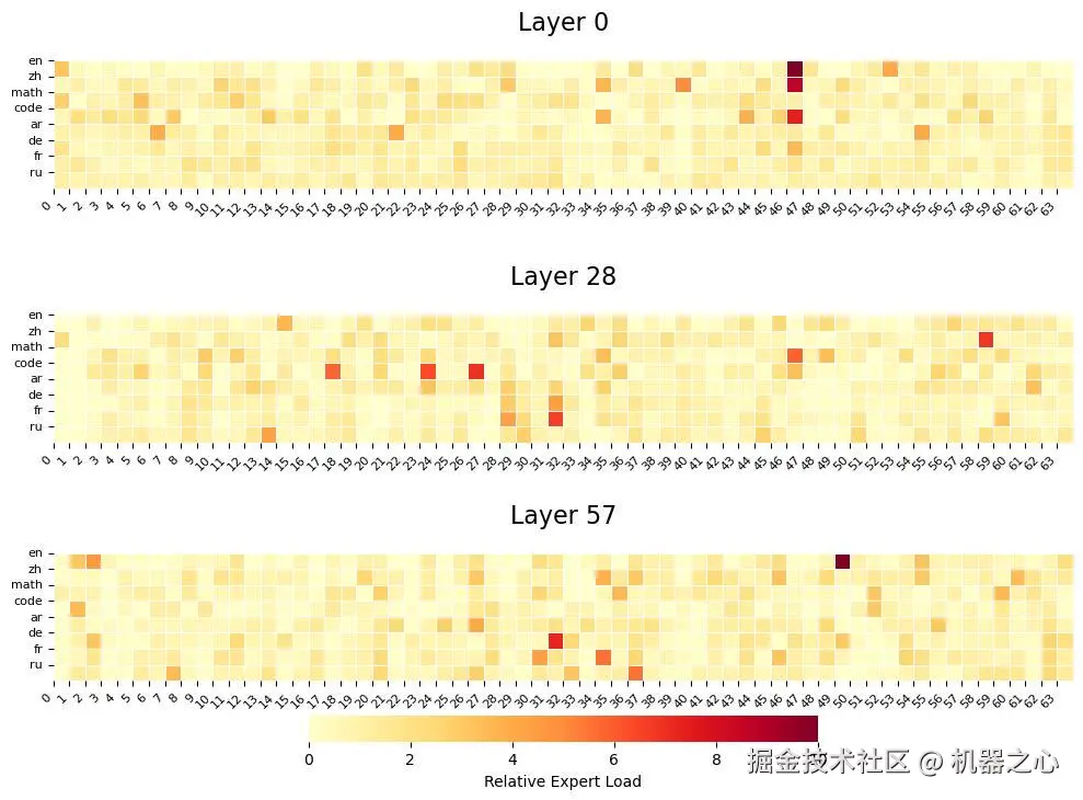 图 2: Pangu Ultra MoE 的专家特化。其中 ar,de,fr,ru 分别代表阿拉伯语,德语,法语,以及俄语。