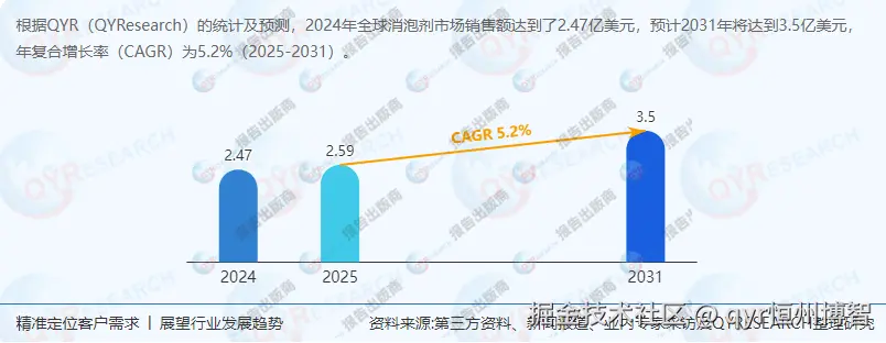 根据QYResearch最新调研报告显示,2024年全球消泡剂销售额:2.47亿美元(CAGR 5.2%,2025-2031年)。