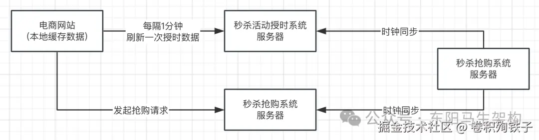 用户进入秒杀商品活动页面后,就要等待秒杀活动开始。此时一般需要前端定时访问后端的一个授时服务接口,进行时钟同步。